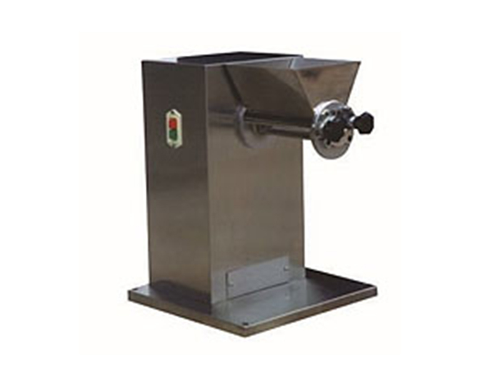 本机可将混合的粉块状料制成颗粒状,烘干后供压片,也可将凝结成块的物料粉